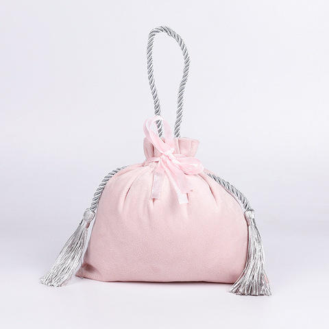 11cm * 14cmレッドピンクタッセルベルベットバッグ巾着キャンディーポーチパッキングバッグウェディングバッグ
