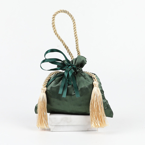 フリンジ付き巾着タッセルベルベットハンドル付きウェディングキャンディーバッグクリエイティブヨーロピアンスタイルサテンジュエリーウェディングフェイバーバッグ